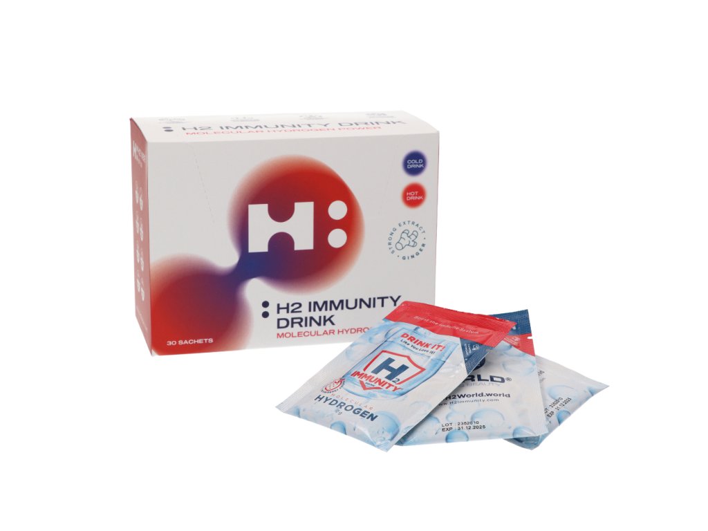 Zažeňte žízeň společně s možnou hrozbou každodenních nástrah. Osvěžte se jahodovým, studeným drinkem, zahřejte se horkým hrnkem. Nebo si obsah sáčku nasypte jen tak do pusy. H2 Immunity Drink podpoří tělo v tvorbě molekulárního vodíku a pomůže posílit obranyschopnost pomocí vitaminu C, B, kyseliny listové, zinku, selenu a výtažků ze zázvoru, reishi a cordycepsu.